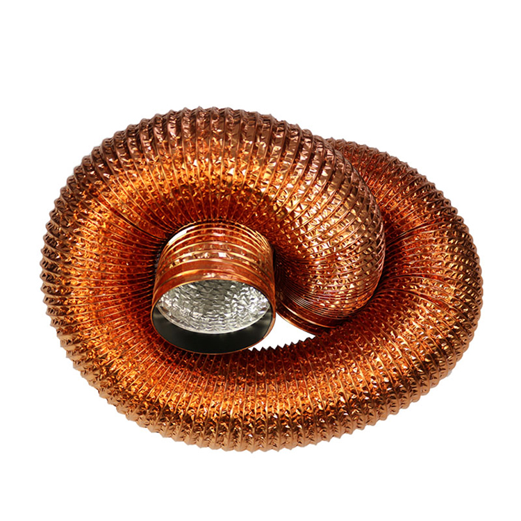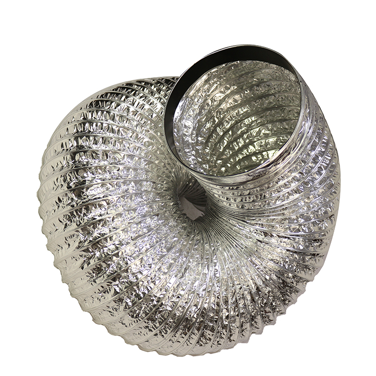 Kitchen Ventilation Flexible Duct is made of spiral steel wire laminated with 2 Layers aluminum flexible duct. It has good flexibility,good fire retardant, non-stick oil, convulsions sound is less than ordinary plastic pipe,and long service life. It will be more reasonable and perfect if its high-grade appearance match with Range hoods.