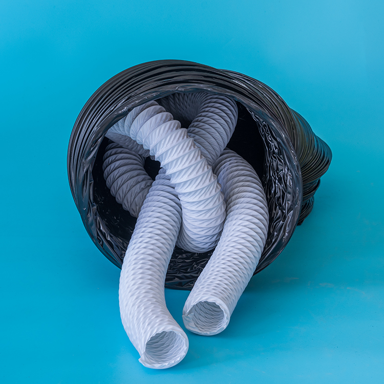 PVC伸縮軟管采用PVC膜復(fù)合膜繞帖高彈性螺旋形強(qiáng)韌鋼絲制作而成。