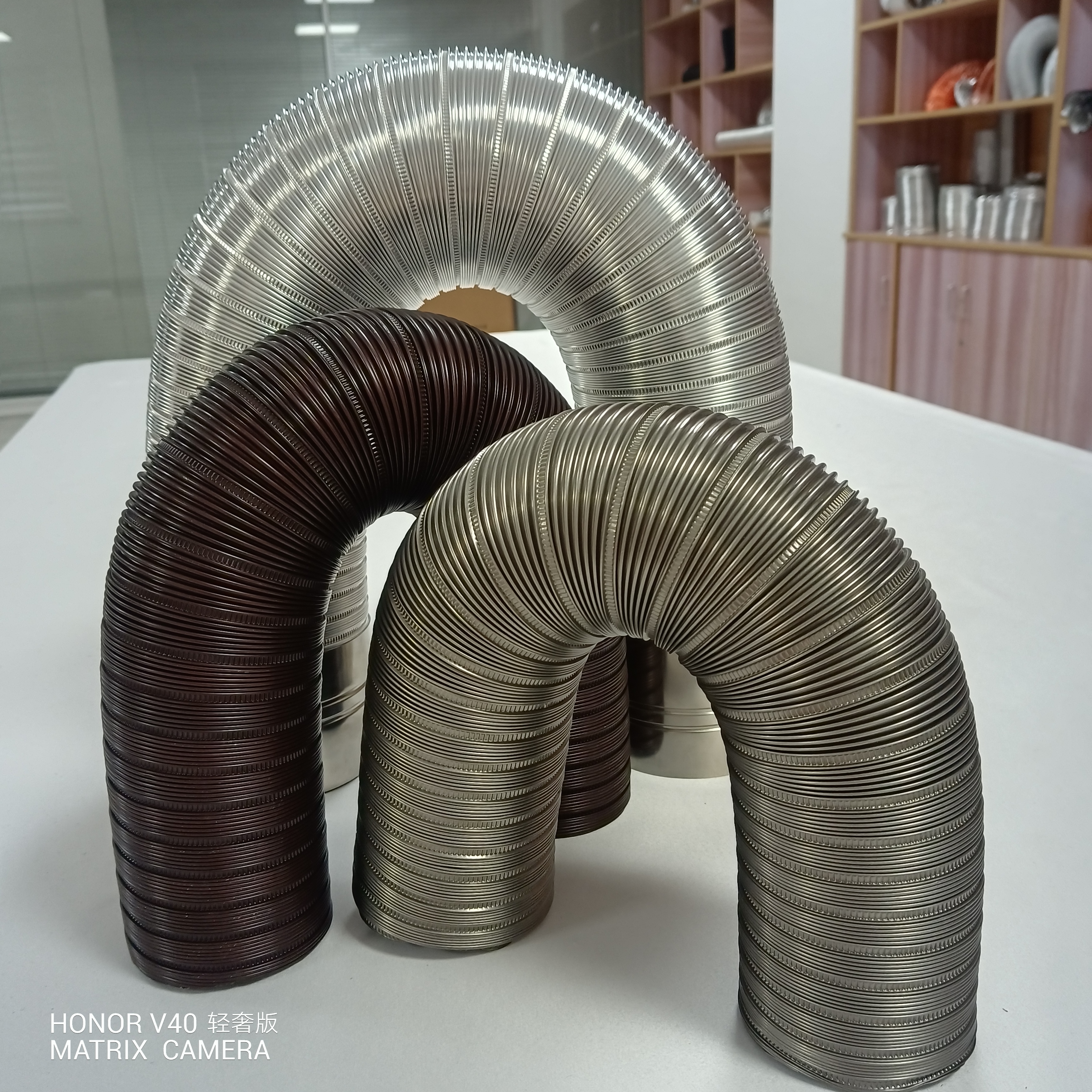 鋁制波紋管是由厚度為0.08mm-0.20mm的純鋁箔直接壓制而成,可伸縮,可塑性強,適用于熱水器、油煙機等排污排風用。